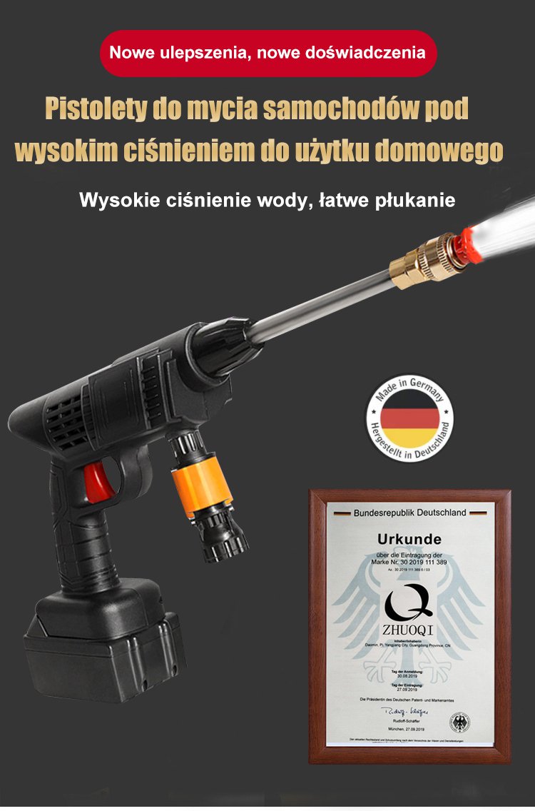 Niemiecki wysokociśnieniowy pistolet wodny bezprzewodowy